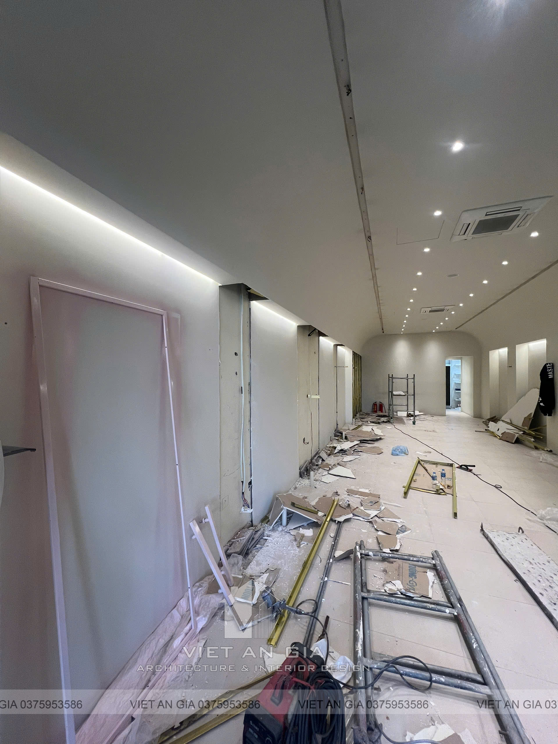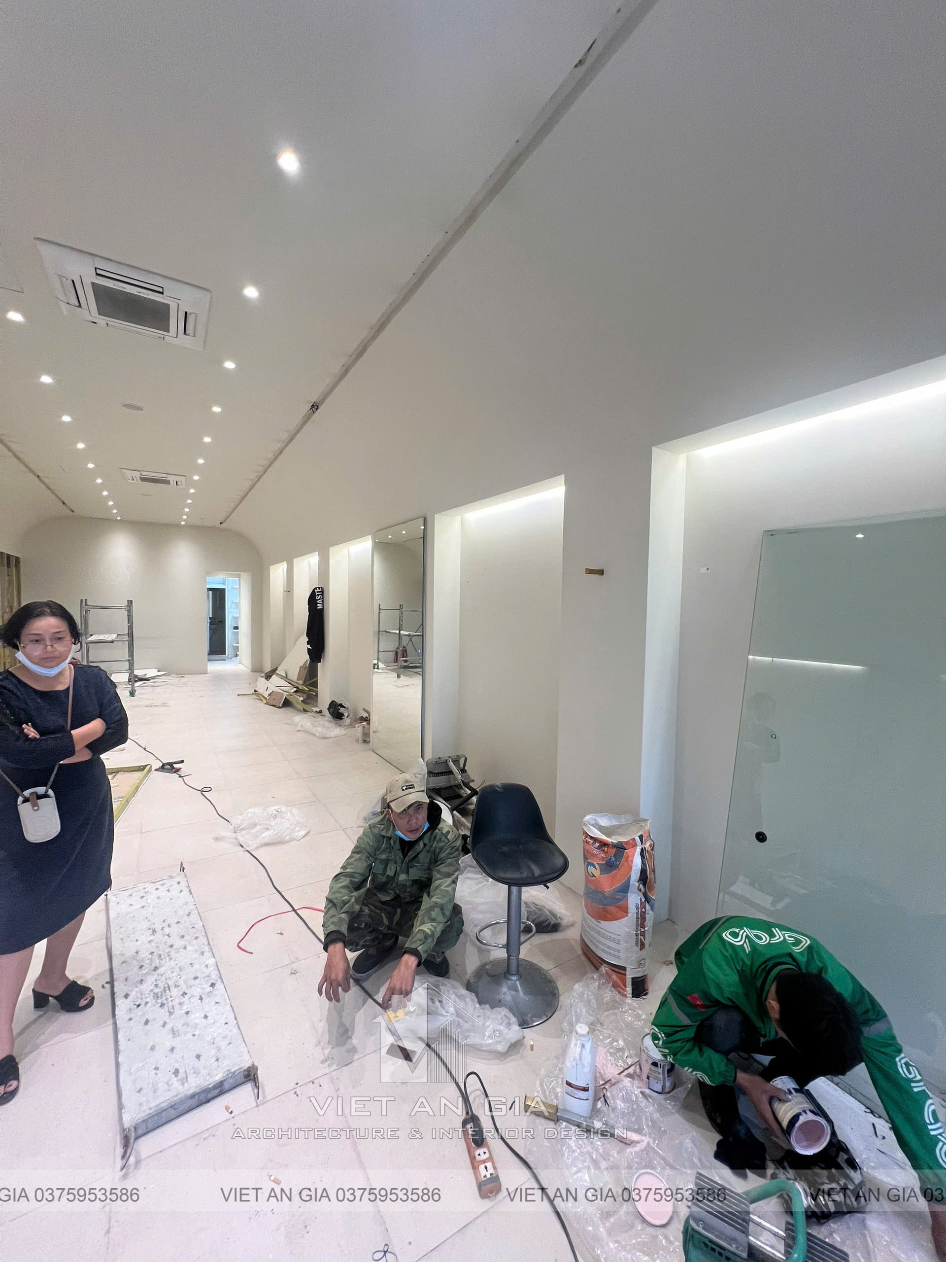Chào mừng bạn đến với Haru Film tại Hà Nội, một không gian được Việt An Gia thiết kế với phong cách tối giản nhưng không kém phần cuốn hút. Sử dụng tông màu trắng kem làm chủ đạo, kết hợp với ánh sáng dịu nhẹ từ hệ thống đèn LED trần và gương soi viền LED, không gian mang lại cảm giác sạch sẽ, thoáng đãng và vô cùng dễ chịu.