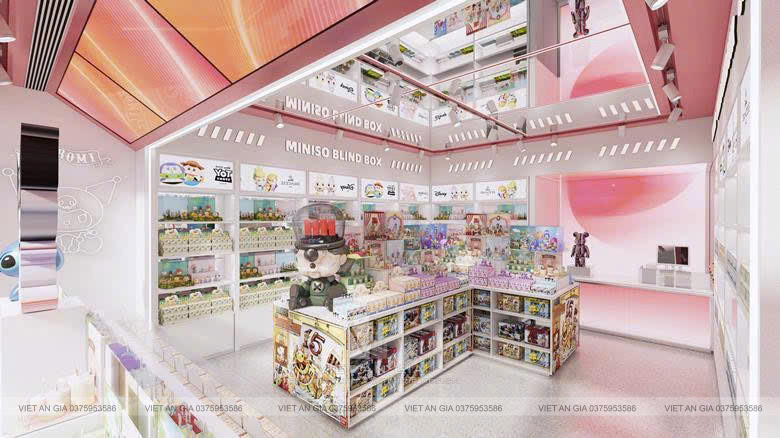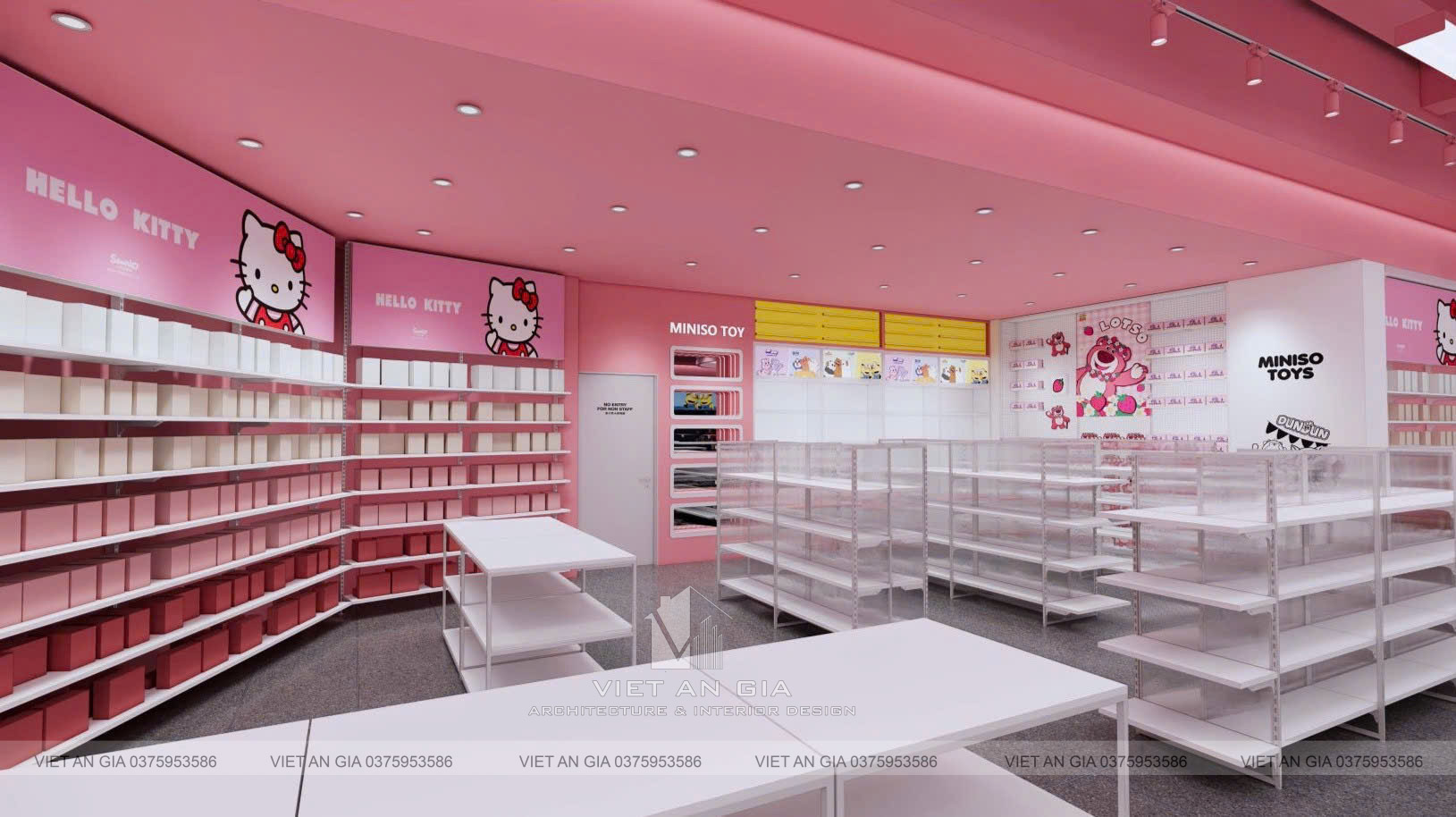 Shop bán hàng tại Hà Nội được thiết kế hiện đại, lấy cảm hứng từ chủ đề hàng không, mang đến không gian sáng tạo và thu hút. Với tông màu pastel hồng phấn và xanh lam, shop tạo cảm giác tươi mới. Quầy bán hàng mô phỏng hình dáng máy bay, kết hợp cùng các chi tiết trang trí như mô hình máy bay và poster, tạo không khí độc đáo. Không gian thoáng đãng, hợp phong thủy, giúp thu hút tài lộc và mang lại may mắn cho việc kinh doanh.